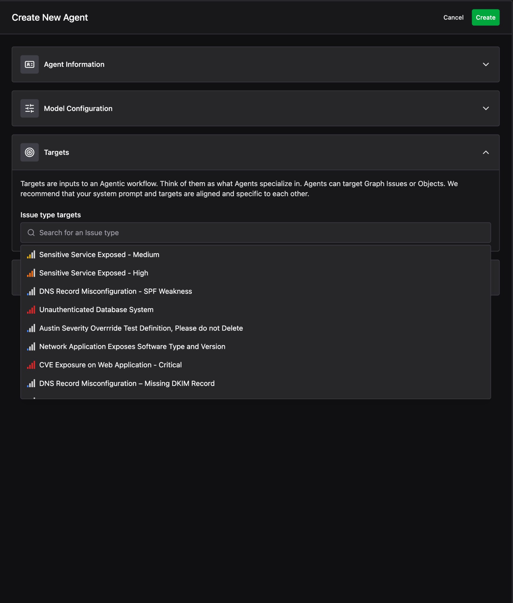 Agents can target Graph Issues or Objects. We recommend that your system prompt and targets are aligned and specific to each other so the Agent produces consistent, high-quality results.