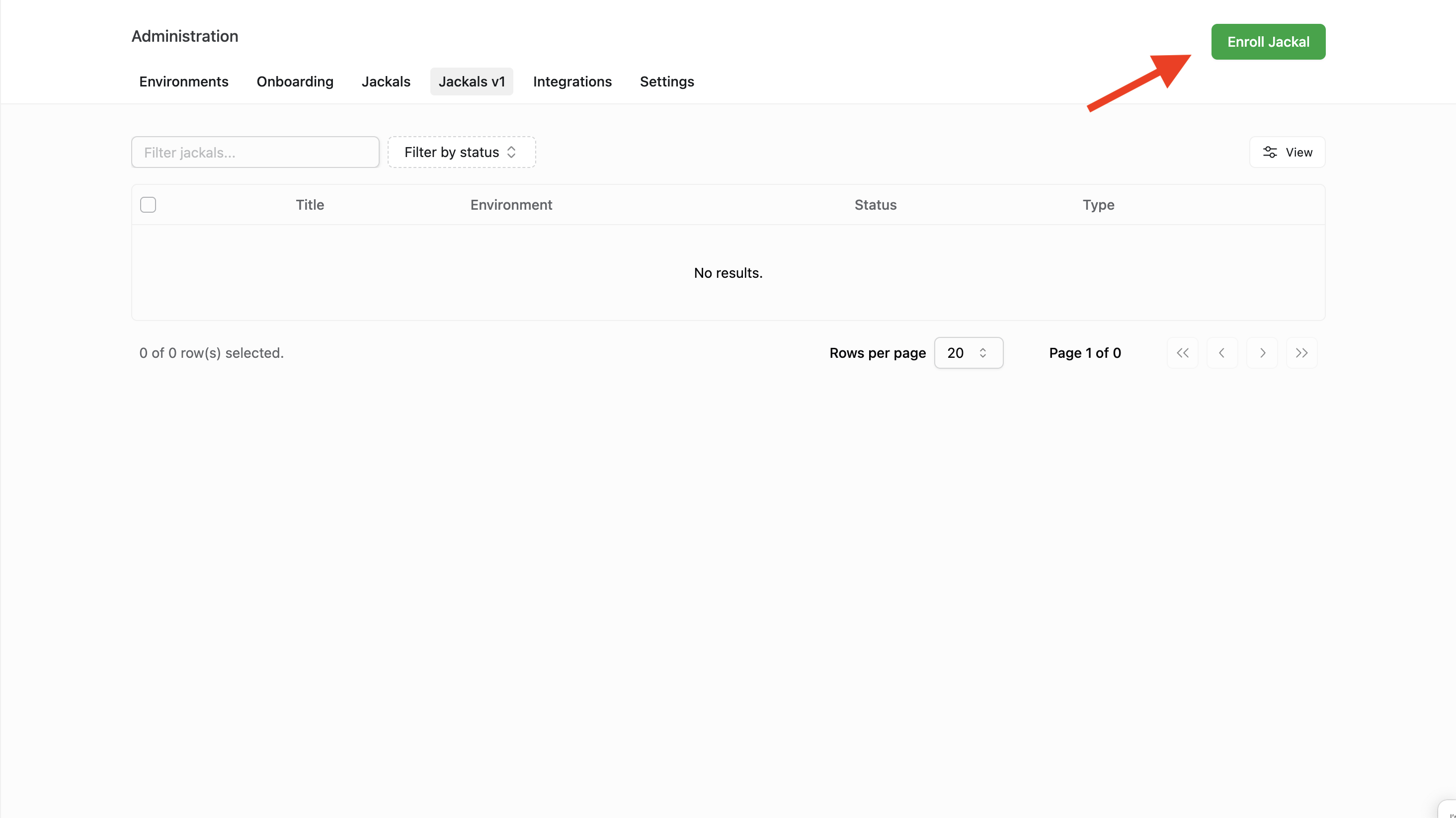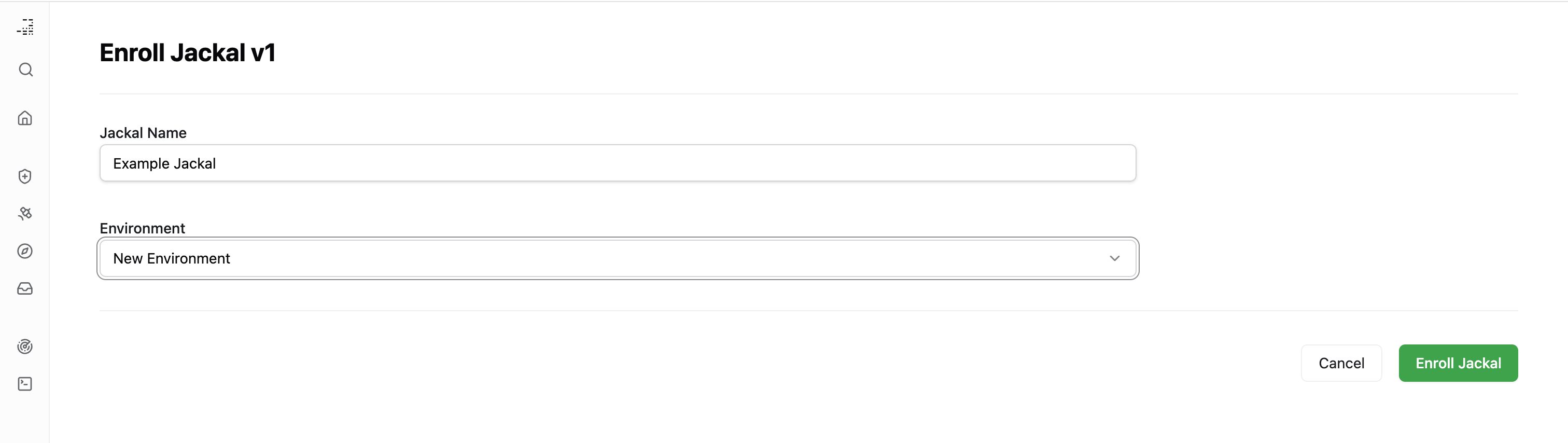 Enroll Jackal. For guidance on how to create an environment, see the Create a new Environment.