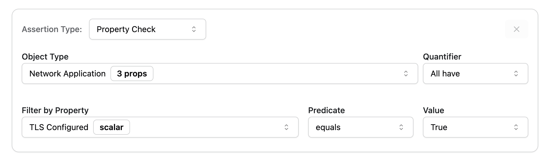 For example, you can check whether the Network Applications returned by your task all have TLS Configuration values of True.