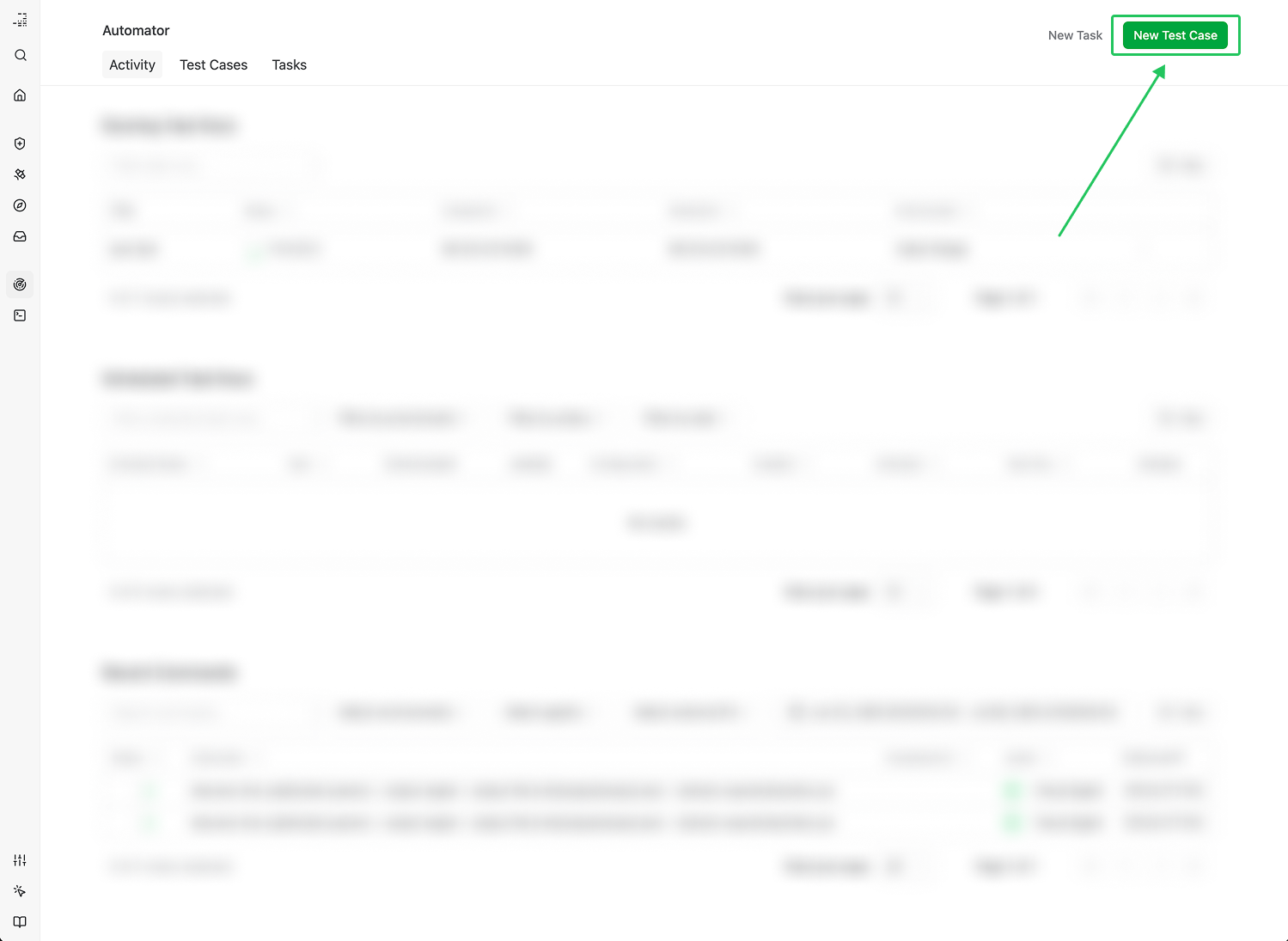 Start by navigating to Automator in the left-navigation. Existing Test Cases live in the Test Cases tab.