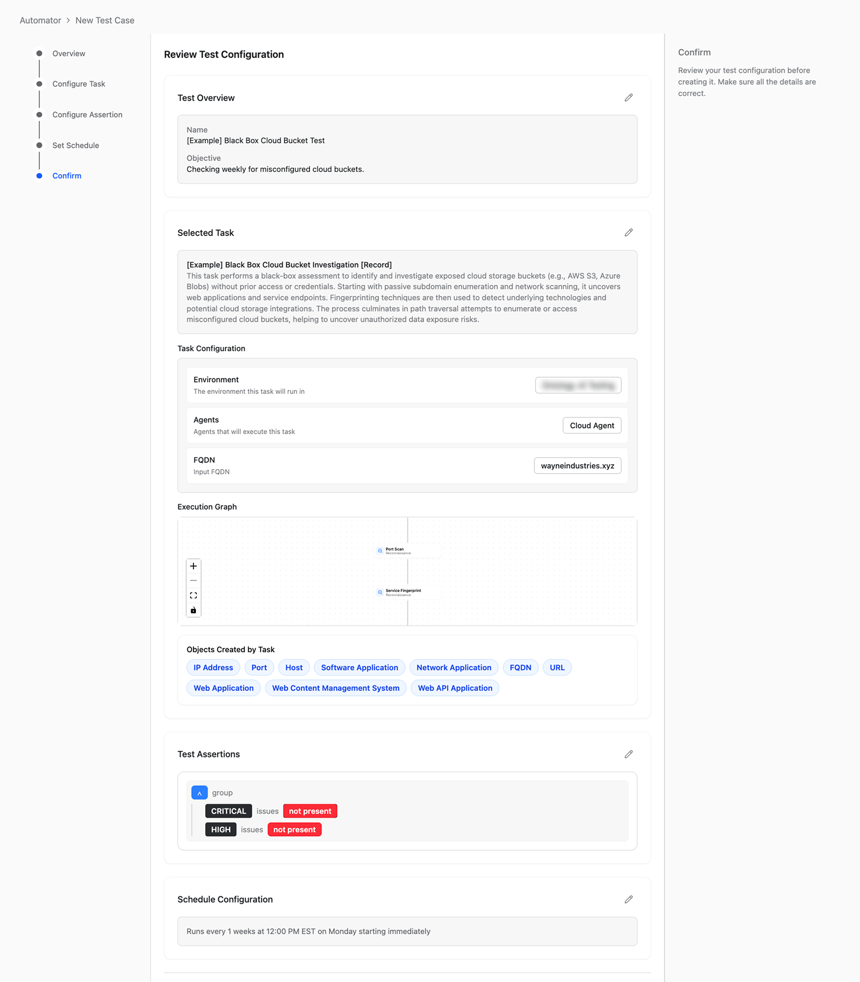In this guide, we will create a Test Case for the “[Example] Black Box Cloud Bucket Investigation [Record]” Task we created in the previous guide as our example.