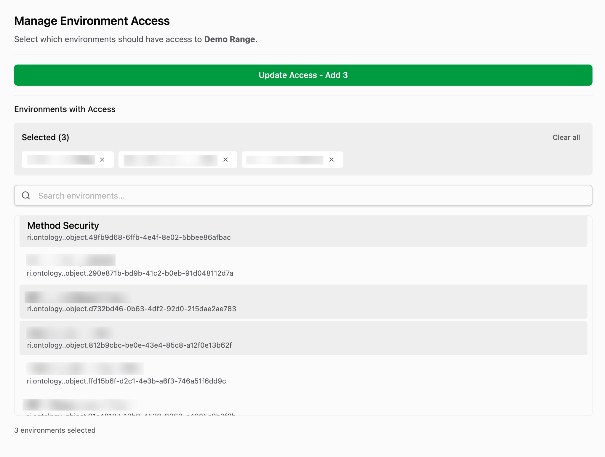 To provide you with granular control over which Method Environments can leverage this new Cloud Connection, you must delegate access to individual Environments. This security measure ensures that only approved environments can use these AWS credentials.
