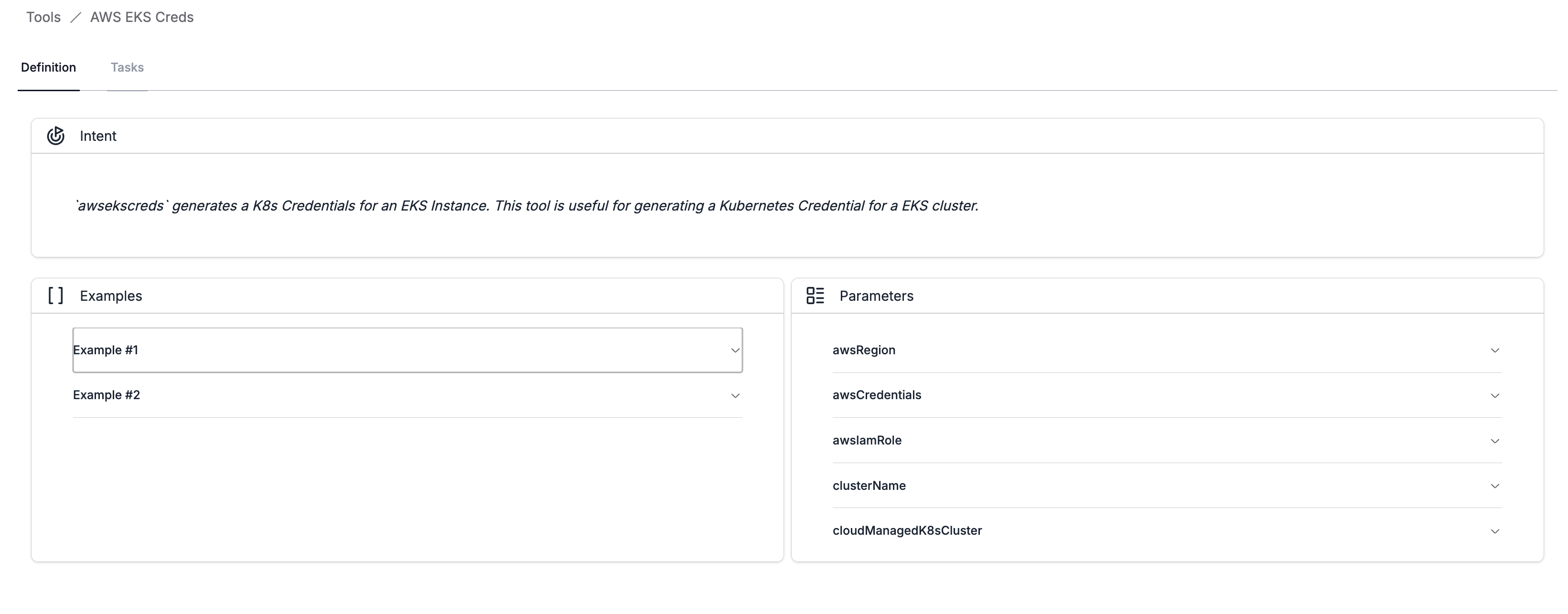 Now that you have an AWS Credential created, whenever running a task that involves a K8s Tool, place the AWS EKS Creds tool at the top of the task to enable the creation of a short lived K8s Cluster Token that will allow authenticated enumeration of the K8s Cluster.