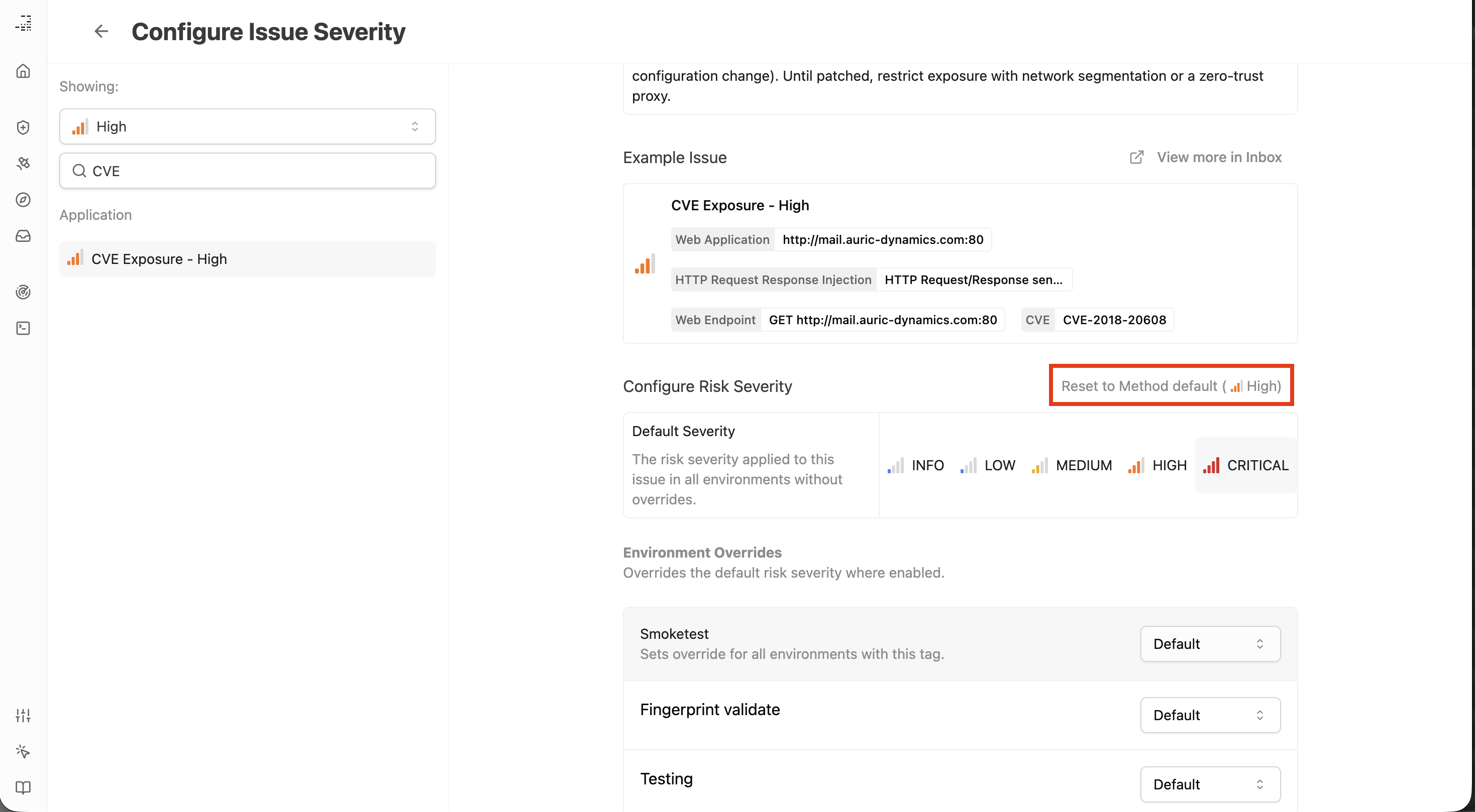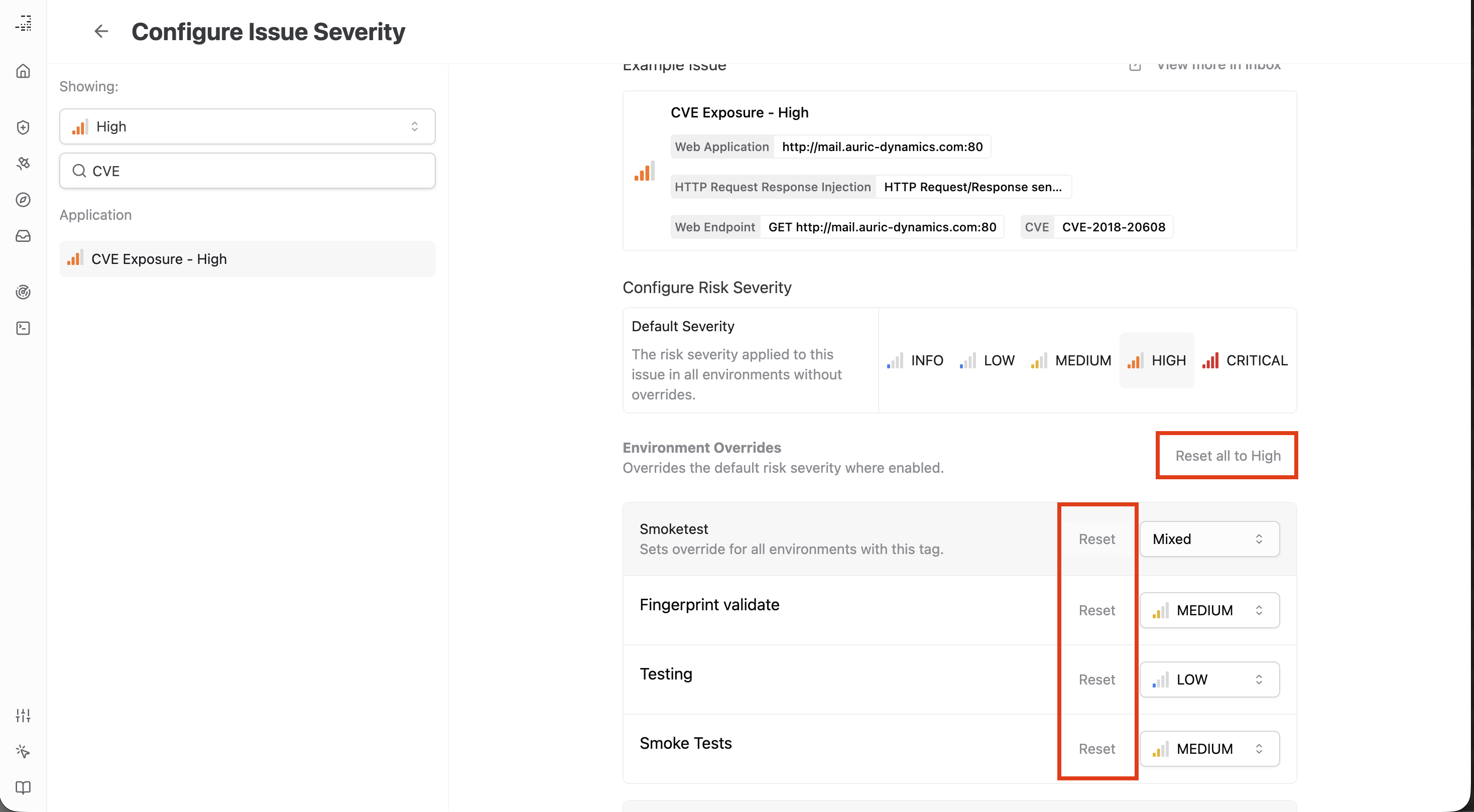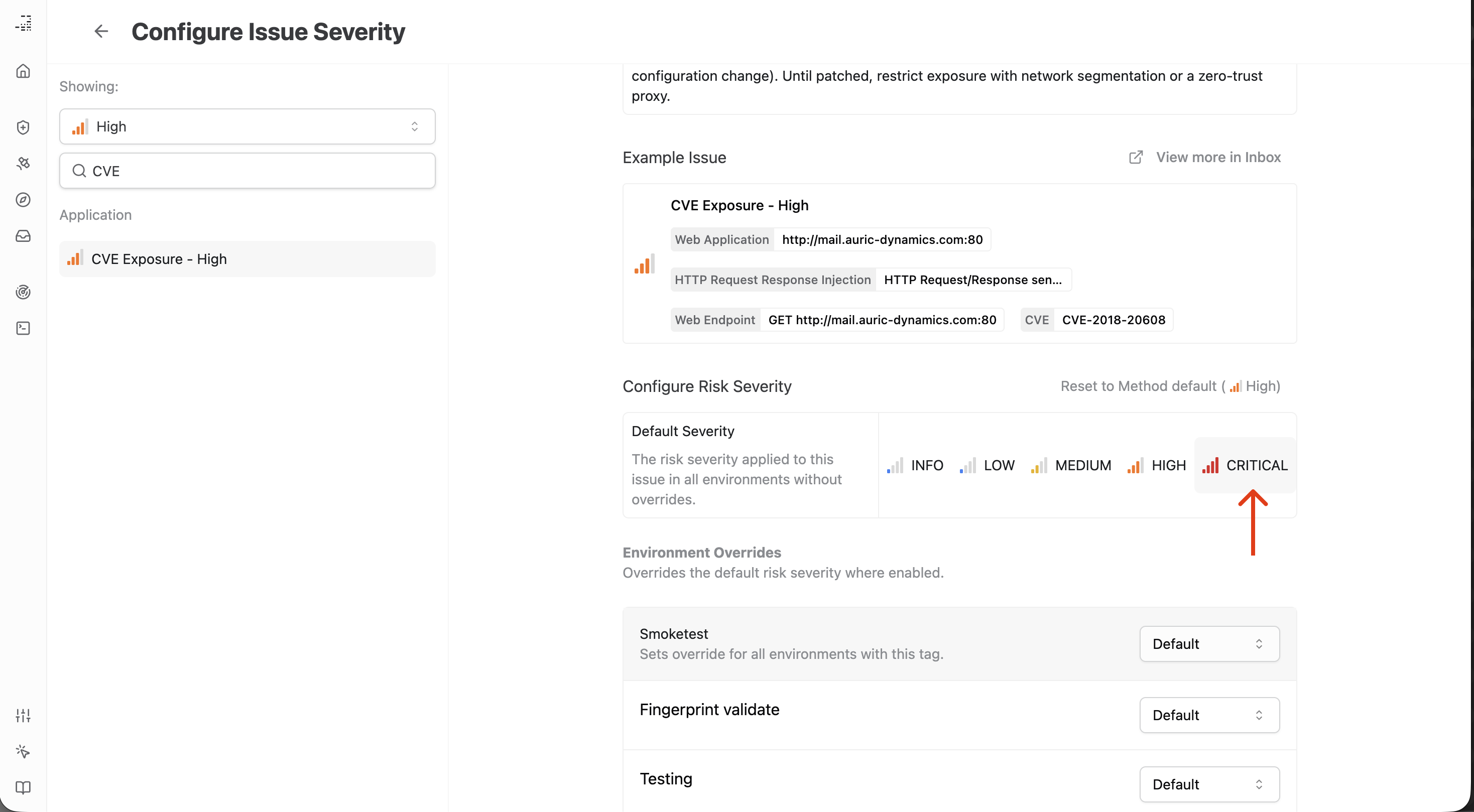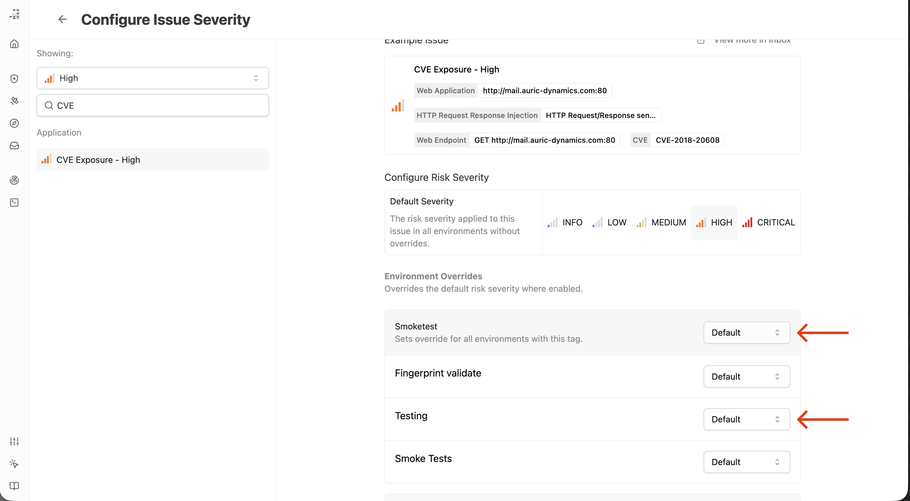 - Environment-Level Overrides – Apply severity overrides to specific environments or groups of environments, providing fine-grained control