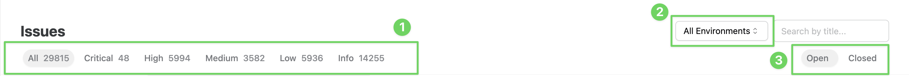 - Use this dropdown to only show issues for a particular Environment or tagged-group of environments.