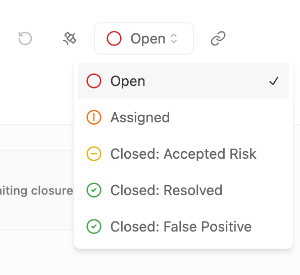 You can change the issue status using the drop-down menu at the top-right corner of any Issue.