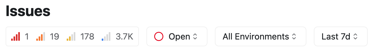 - Show issues seen in the last 24h, 7d, 30d, or all time.