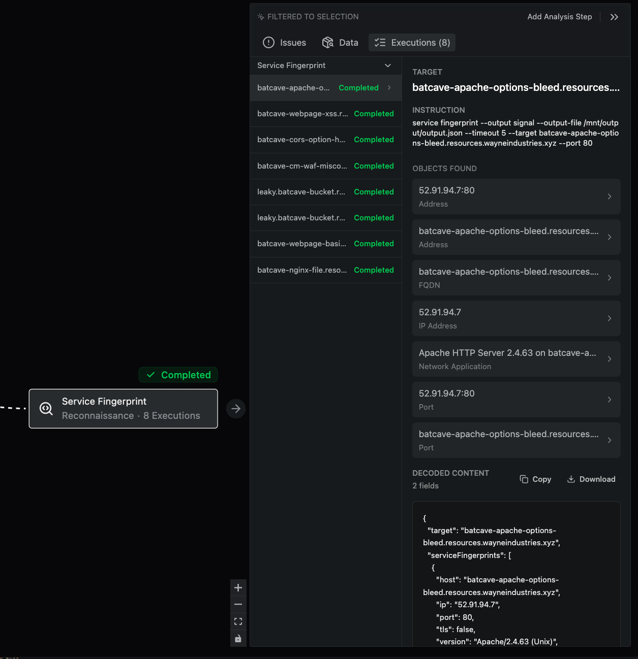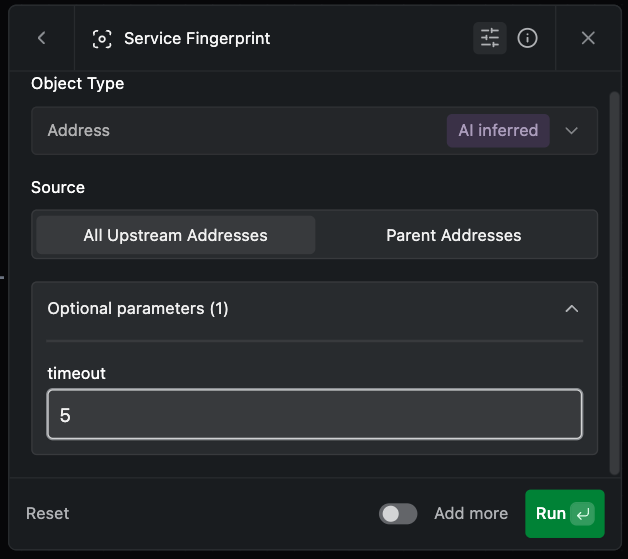 Select Service Fingerprint c. Click and configure the execution; adjust Optional parameter - timeout to be 5, and hit Run