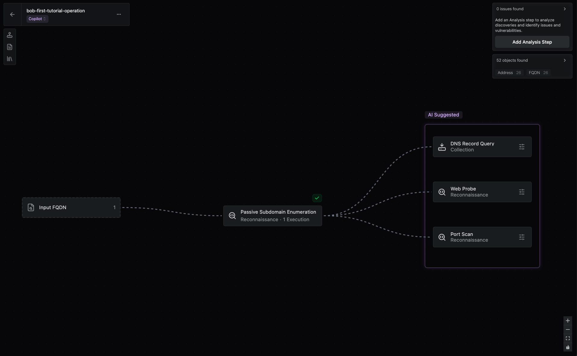 This was a simple, non-intrusive, tutorial to get you familiar with some of the functionality in Operator Mode. Continue the Operation against these cloud hosted resources, start a new one against new targets (e.g. new FQDN, IP, CIDR), or Deploy and Agent and launch an Operation from an installed Access Vector.