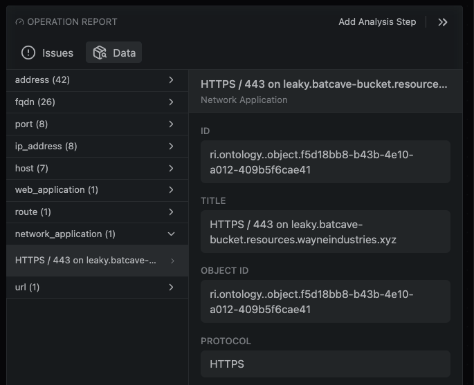 - Take a look at some data; click X objects found on the top-right to open up the Operation Report