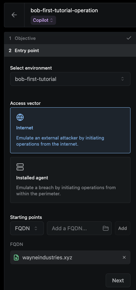 <yourname>-first-tutorialb. Access vector – Internet c. Starting points - withFQDNselected, addwayneindustries.xyz