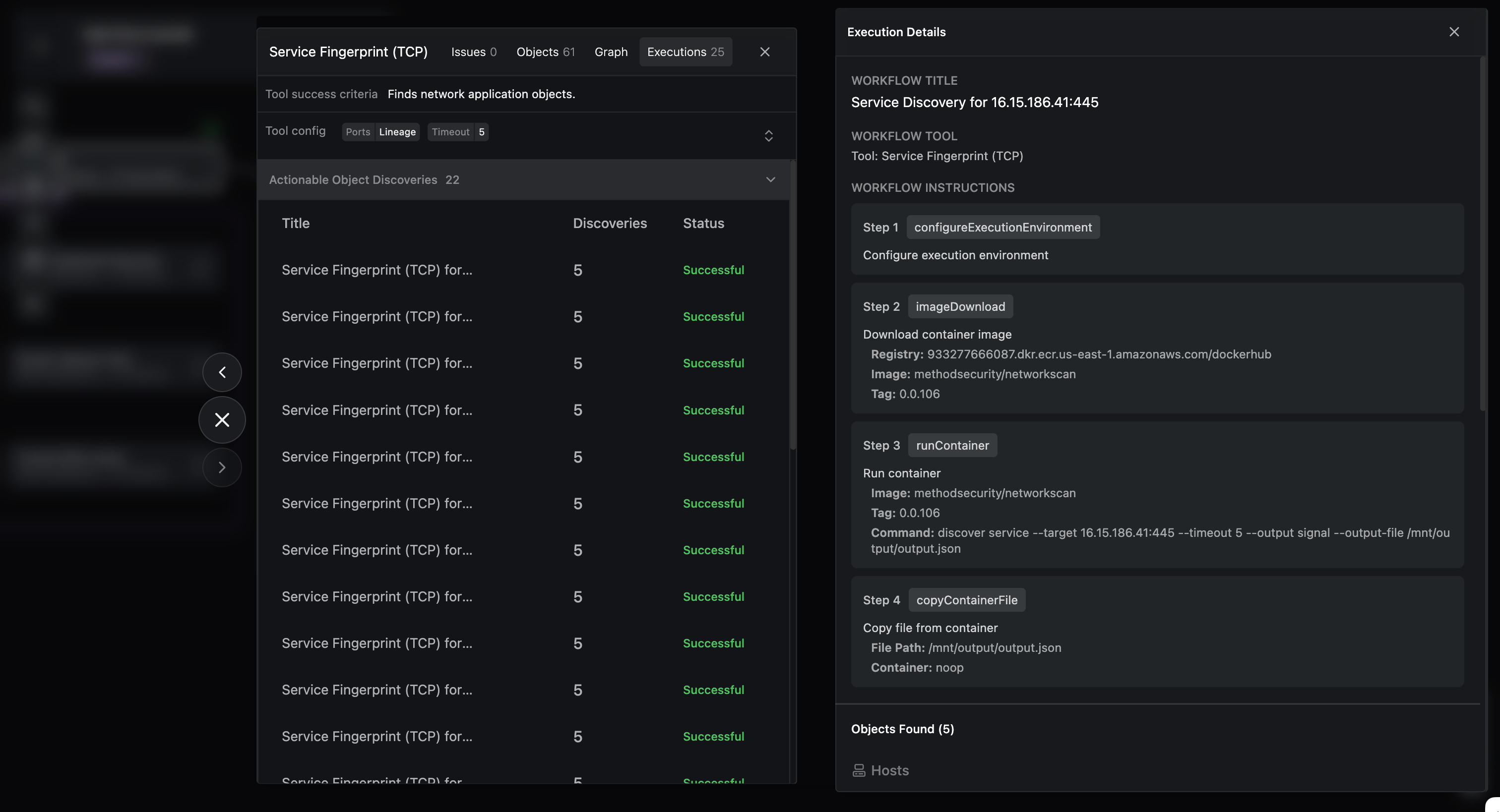 c. For each execution, view both the Workflow Steps, Object Found, and Signal Output.