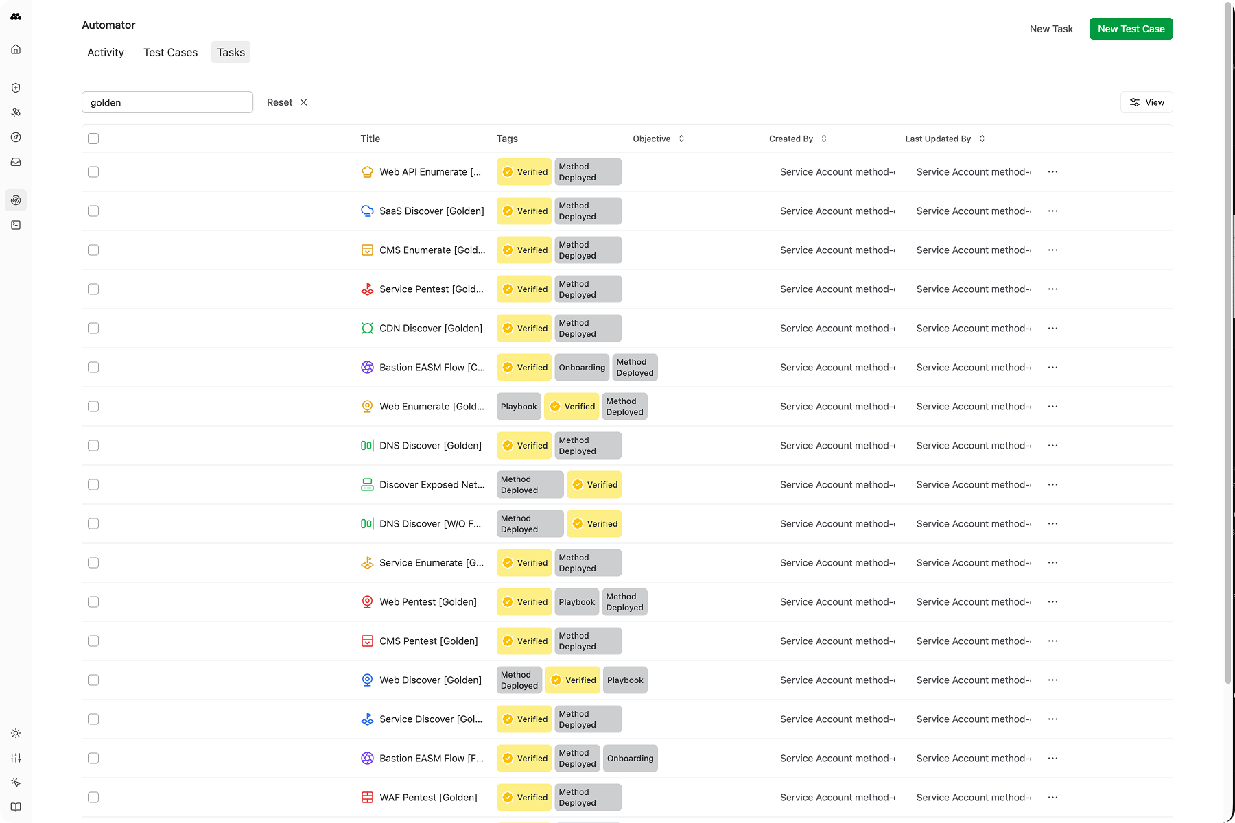 The primary automation in Method is a Test Case. A Test Case allows you to choose a Task, run it against specified target objects on a fixed schedule, and to assess that the output looks as expected using assertions.