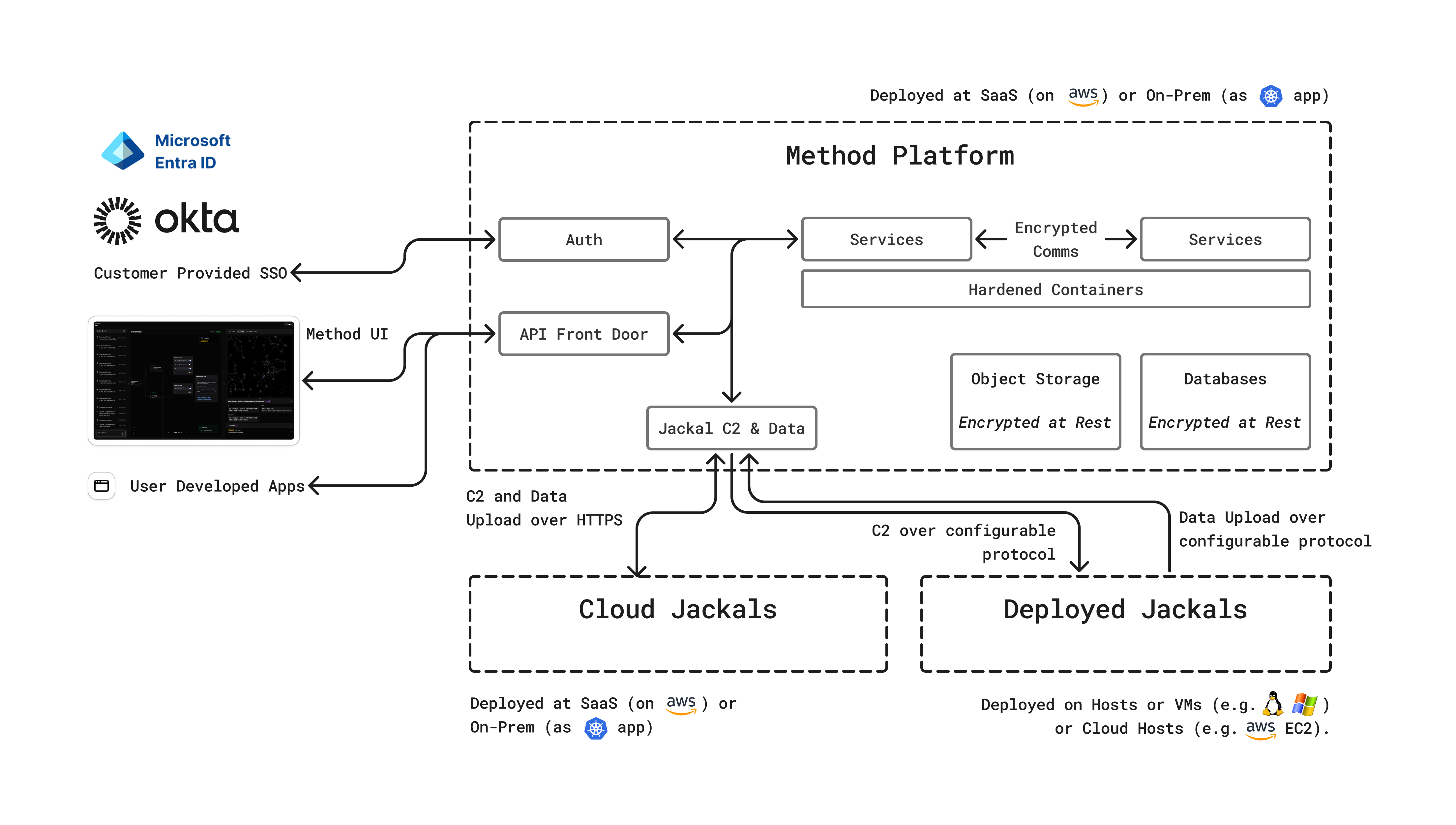 Overview of deployment, technical design, and security of Method Platform.