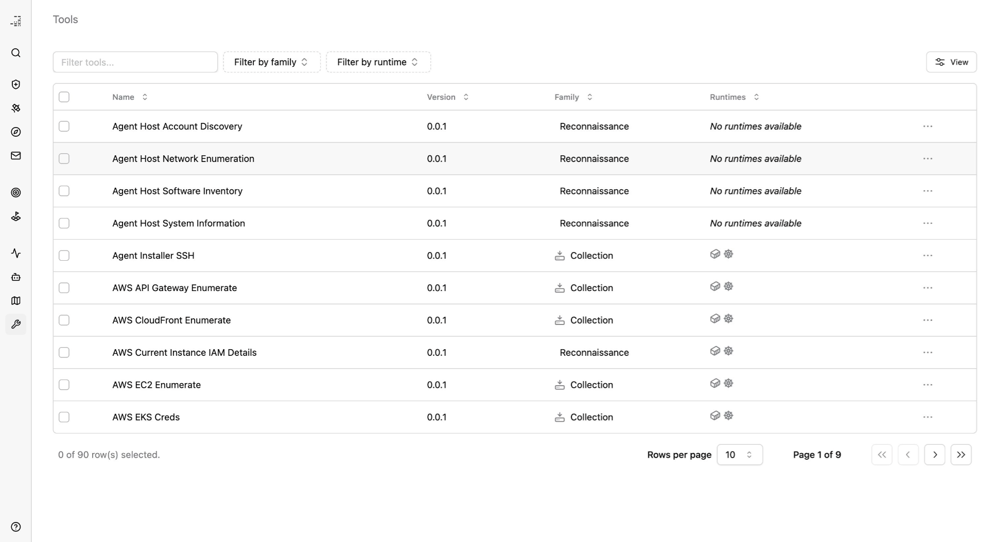 A Tool is an atomic security action in the Method Platform. That security action may wrap an API (e.g. AWS) or a scanner (e.g. Nessus) or some custom security CLI. Each Tool is designed to perform a technical task, such as scanning a target, retrieving cloud configuration data, or enumerating network resources and can be used independently or as part of a larger workflow. Tools are organized by families (like Collection, Reconnaissance, or Exploitation) and executed through available runtimes.