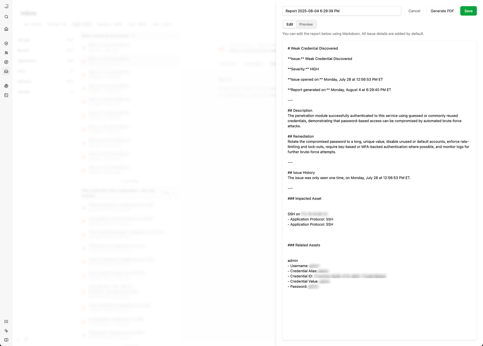 You can now auto-generate Issue Reports to share with colleagues who do not have Method access. Issue Reports allow you to share details of the issue such as severity, date discovered, issue description, remediation, and the details of the assets associated with the issue. Coming soon: instructions for the Report recipient to reproduce the issue without needing access to Method.